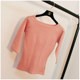 2017春装新款修身镂空针织衫百搭女装七分袖打底衫一字领上衣女