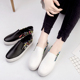 夏季小白鞋女格子懒人鞋一脚蹬厚底乐福鞋韩版皮面帆布鞋子休闲鞋