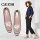 OE欧意春秋季新款蛋卷鞋韩版方头软底平底孕妇单鞋浅口真皮女鞋子