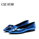 OE欧意新款韩版女士真皮时尚休闲单鞋通勤平底浅口尖头牛皮女鞋