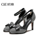 OE欧意 春季新款韩版千鸟格甜美蝴蝶结细跟一字扣带包头高跟凉鞋