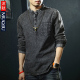 沐秋春季纯棉牛仔衬衫无领日系衬衣男装韩版修身长袖黑色上衣2016