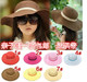 儿童帽子夏女童帽韩版遮阳帽大沿草帽草编沙滩帽大檐帽 可折叠