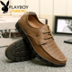花花公子男鞋春季潮鞋真皮反绒皮鞋子男休闲板鞋懒人乐福鞋一脚蹬