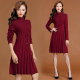 秋冬款针织羊绒连衣裙韩版立领黑色长袖中长款气质收腰A字毛衣裙