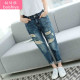 2017春夏韩版bf宽松破洞牛仔裤女乞丐裤大码显瘦哈伦九分裤垮裤潮