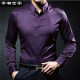 男士长袖衬衫2017春季薄款衬衣 中年商务休闲金丝绒寸衫男装免烫