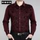 帝潮世家秋冬季男士长袖保暖衬衫中老年红色印花棉质衬衣加绒加厚