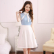 【天天特价】蓝白拼接假两件连衣裙2017新款夏装女装收腰雪纺裙