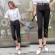 慕思雨女裤玫瑰花刺绣铅笔裤2017夏款八分裤修身小脚休闲裤17208