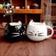 肚皮家萌萌黑白可爱猫咪陶瓷马克杯情侣水杯子大肚办公室手柄 E72