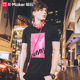 暗码2016夏季新款修身休闲圆领印花黑色情侣短袖t恤男青年潮流呟