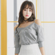 2017新款衬衣女韩版百搭清新甜美宽松学生吊带露肩上衣格子衬衫潮