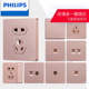 飞利浦开关插座飞逸金属拉丝玫瑰金五孔开关插座86型套餐快速选购