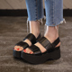 艾可茜尼夏季韩版女鞋真皮舒适平底罗马露趾凉鞋松糕鞋学生潮流款