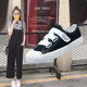 帆布鞋女学生韩版涂鸦板鞋厚底懒人鞋低帮一脚蹬原宿风黑色乐福鞋