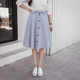 2016春秋韩版复古高腰牛仔半身裙 中长款裙子A字伞裙百褶裙百搭女