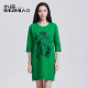 水淼2016大码女装新品秋装胖mm时尚印染显瘦中袖连衣裙S3086Y7355