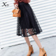 2017春季女装新款韩版镂空松紧腰黑色高腰A字中长款蕾丝半身裙