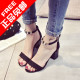 夏季新款潮2017一字扣罗马凉鞋女粗跟高跟鞋露趾性感包跟女式凉鞋