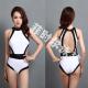 新款爆款欧美外贸性感连体泳衣花边黑白拼色速卖通热销游泳衣女