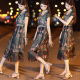 2017夏季新款女装韩版显瘦短袖长款雪纺裙子碎花印花长裙连衣裙女