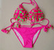 英国RI~双面立体桃花花瓣吊坠玫粉色撞色抽绳性感花朵泳衣比基尼