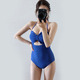 包邮2016新款时尚蓝色三角连体泳衣女钢托聚拢性感显瘦遮肚游泳衣