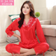 春秋季女士冰丝长袖长裤睡衣 两件套装加大码性感女装睡衣家居服