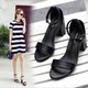 2017夏季简约一字扣带粗跟高跟凉鞋罗马鞋露趾女鞋性感百搭女鞋子