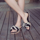 欧美走秀款串珠草编麻绳低跟凉拖鞋2017春夏新款珍珠平底一字拖女