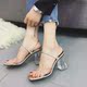 夏季凉拖鞋高跟鱼嘴鞋女百搭粗跟透明亮片水晶跟玻璃高跟凉鞋女