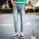 夏季薄款男士九分牛仔裤青少年休闲韩版破洞修身9分小脚哈伦裤潮