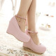 2016春季新款甜美坡跟单鞋女士浅口高跟女鞋圆头厚底一字扣公主鞋