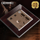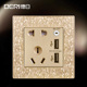 五孔双usb多功能插座面板开关香槟金墙壁五孔电源插座带开关