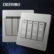 德日浴室开关插座 86型 浴霸开关四开 拉丝银 四合一浴霸开关 4开