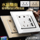 德日开关插座五孔插座墙壁开关香槟金二三插5孔水晶亚克力面板