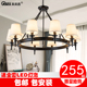 美式乡村铁艺吊灯复古黑色客厅餐厅灯6头欧式简约田园卧室玻璃灯