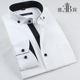新款夏装薄款职业工装男装商务休闲长袖衬衫 免烫修身斜纹衬衣白