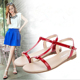 金美若夏季新款女凉鞋真皮平跟漆皮女鞋牛皮平底舒适鞋子正品清仓