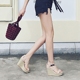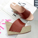 2017夏季韩国代购草编坡跟凉鞋高跟磨砂真皮厚底女鱼嘴拖鞋防水台