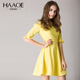 HAAOE2017春季新款女装拼接镂空蕾丝连衣裙女纯色圆领短袖中裙