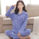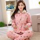 春秋季睡衣少女士纯棉长袖套装秋冬款大码加厚全棉休闲开衫家居服
