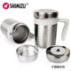 正品上海清水shimizu大容量不锈钢保温杯时尚方杯男士泡茶杯450ml
