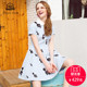 季候风2016春装新款简约印花裙韩版欧根纱连衣裙春装