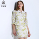 季候风2016秋季新品女装复古中领包边星云图案连衣裙
