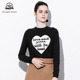 季候风2016冬季女装复古圆领心形字母钉珠套头毛衣女