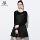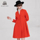 季候风2016冬季新品女装俏皮圆领刺绣心形收腰连衣裙