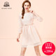 季候风2017春季女装新款学院风假两件趣味刺绣连衣裙女