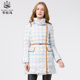 季候风2016秋季女装新品时尚优雅高腰系带纯色中长款外套女